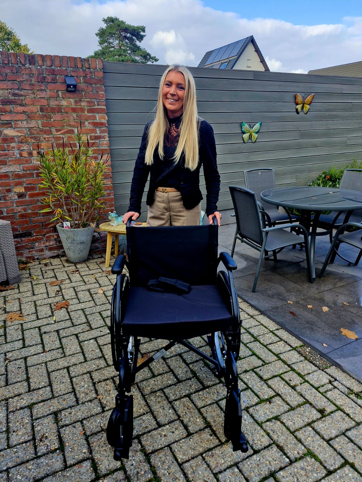 Schenking rolstoel van Bedrijf Talent en Passion van Elke De Backer - vrijwilliger van de familiegroep